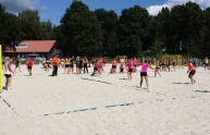 - Het court heeft een oppervlakte van 55 bij 45 meter. Er kunnen 6 beachvolleybalvelden uitgezet worden, of 3 Beach handbal- of 3 beachsoccervelden.